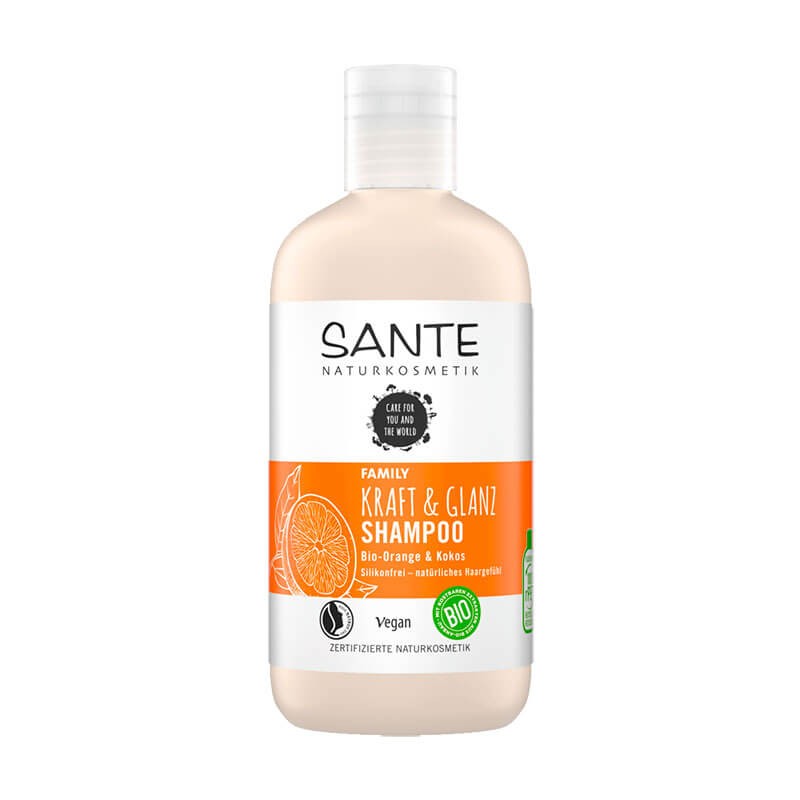 El Champú brillo Bio-Naranja & Coco de la línea familiar de Sante es un producto de gran calidad.